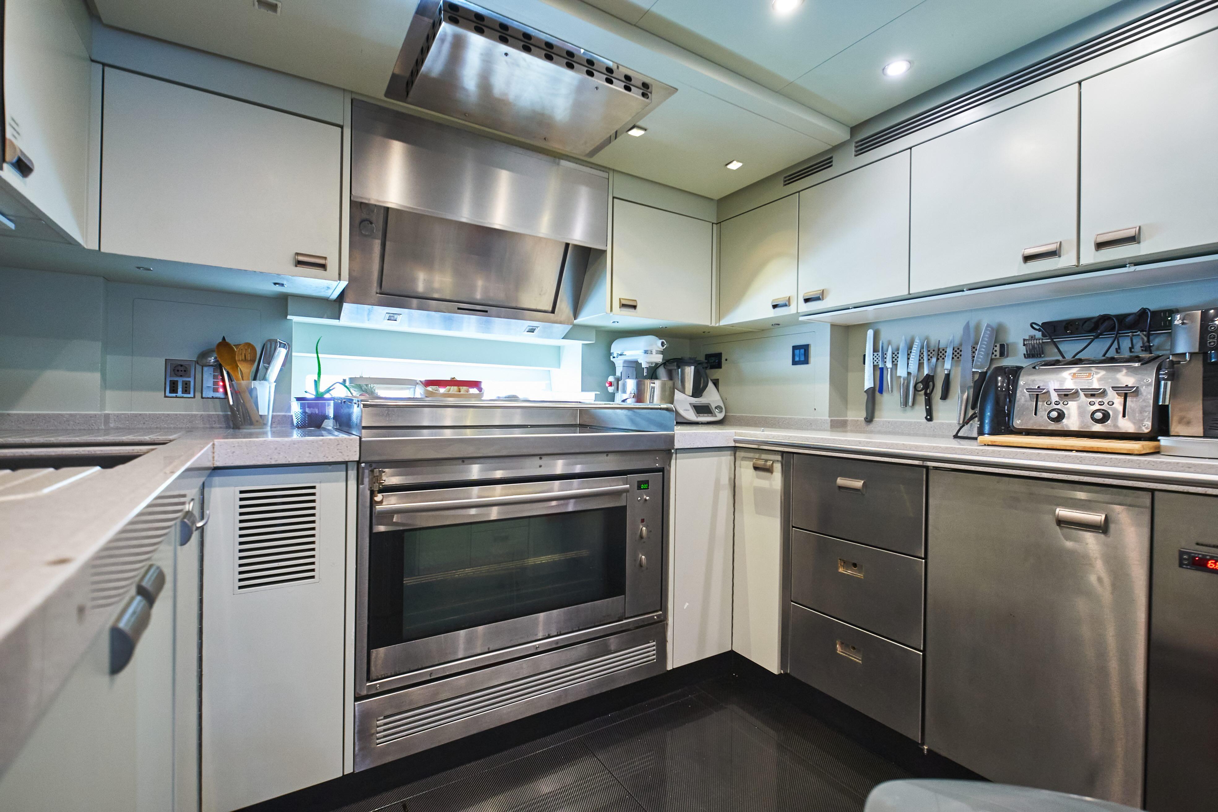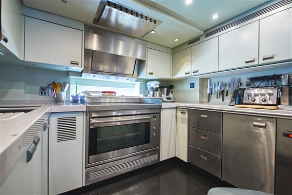 access to the water. Her open deck layout makes good use of her 40-metre length