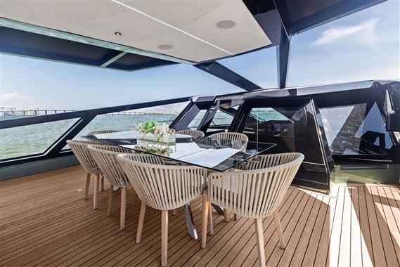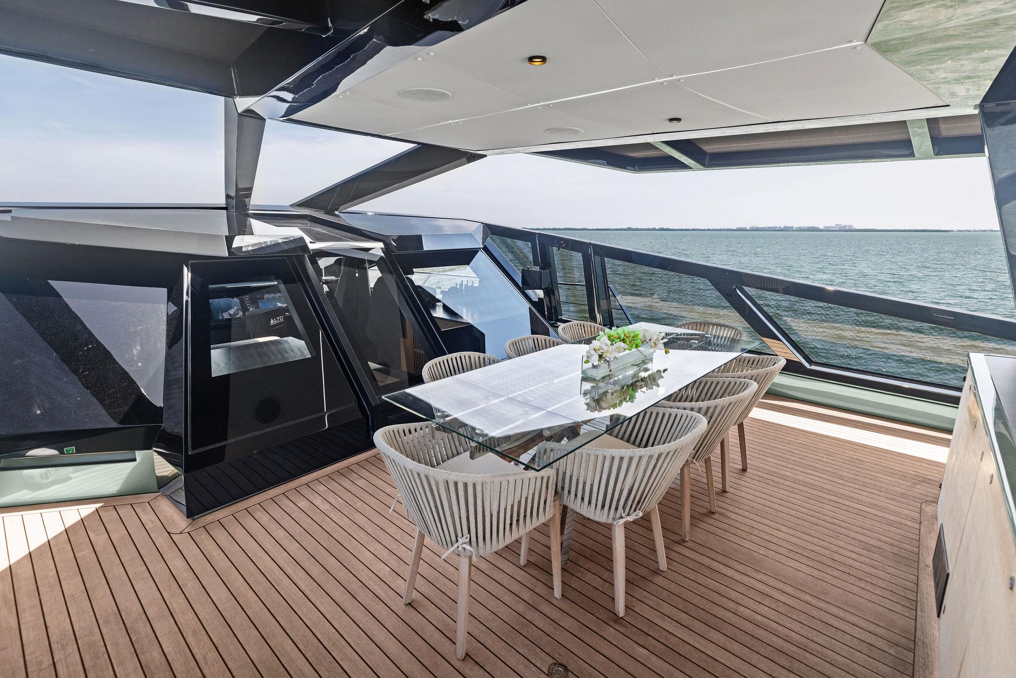 From her breathtaking 270-degree glass-wrapped master suite to her razor-sharp lines and ultra-smooth ride, every detail is crafted to make a lasting impression.