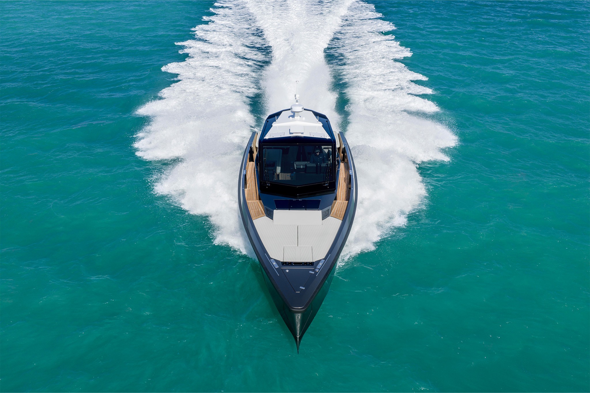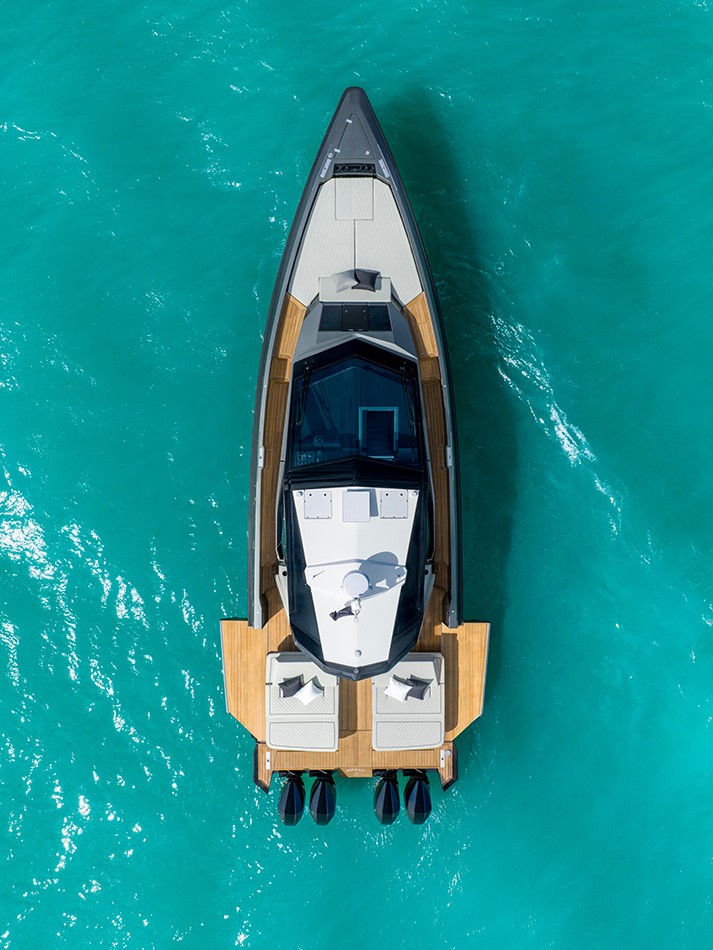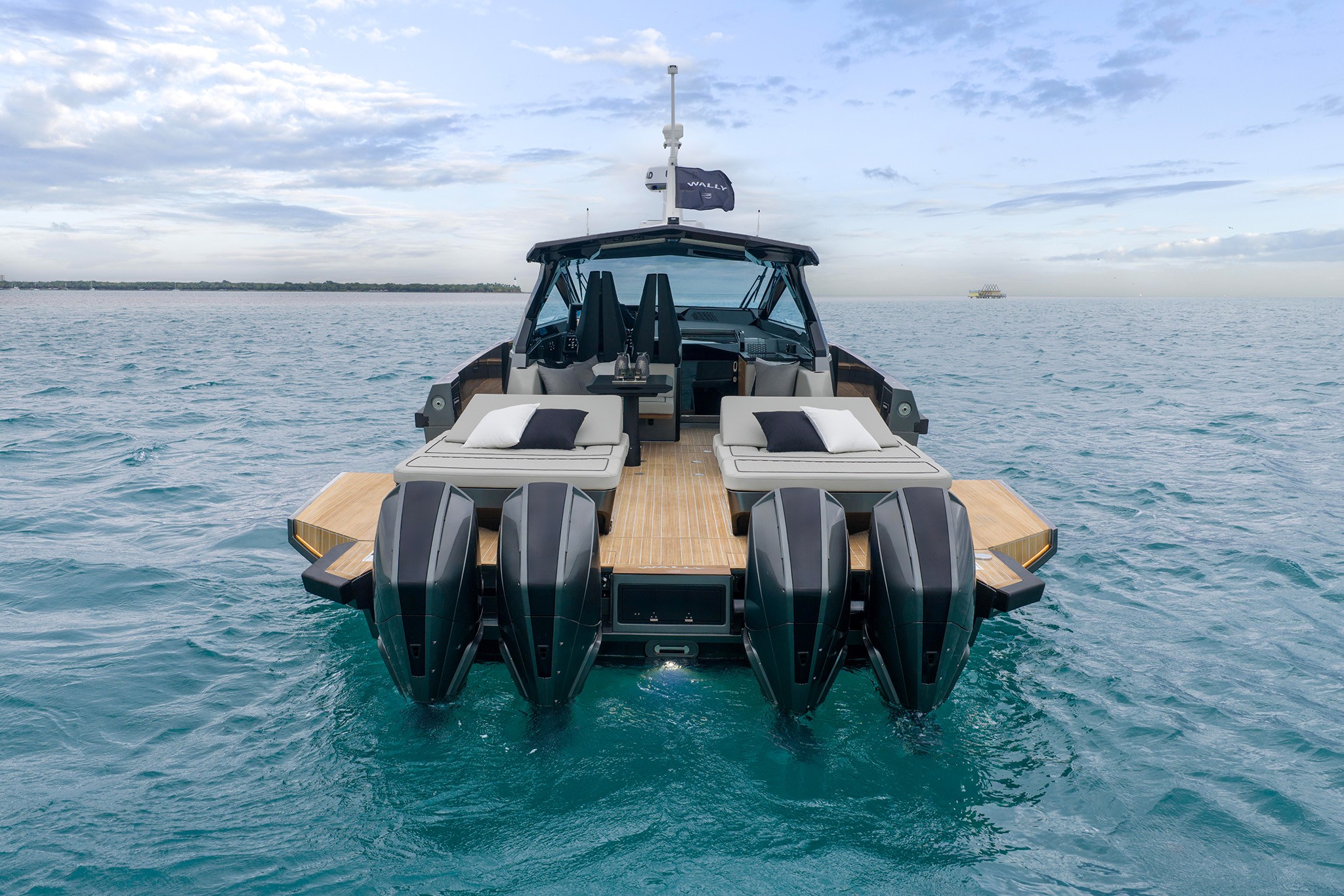 新款Wally游艇融合了wallypower系列与wallytender系列的特点,而外舷设计又赋予其夸张的性能表现和动感的操控体验。 新款Wallypower 50X游艇采用wallypower系列的标志性线条轮廓,可以与著名的58X相提并论,不仅拥有同样的休闲舒适感受,还能满足平日聚会娱乐或者周末探索海岸的不同需求。 当然,沃利的创新精神从未缺席,因此我们在设计上精益求精。有些元素可能会让wallytender的用户感到更为熟悉,例如更加开阔的驾驶舱区域以及船尾甲板。借助模块化的甲板格局,50X的空间可以任意变化以满足不同类型运营模式的需求。 所有沃利“X”级游艇均针对舷外推进系统进行了优化,船体横梁上的凹槽可以安装四台额定功率高达500匹马力的Mercury Racing舷外发动机。由于采用这套极致性能的动力组合,50X的航速可以轻松突破50节,最大里程可达180英里。如果选择4台400匹马力发动机的配置,您仍然可以获得达到48节的最大航速以及240英里的续航能力。 虽然采用舷外推进系统,但这并不意味着会影响乘客在船尾平台上轻松吸水的自然野趣。加上设施齐全的双人船舱以及设计巧妙的淋浴间,50X可以说是麻雀虽小,五脏俱全。沃利游艇,真正遥遥领先!