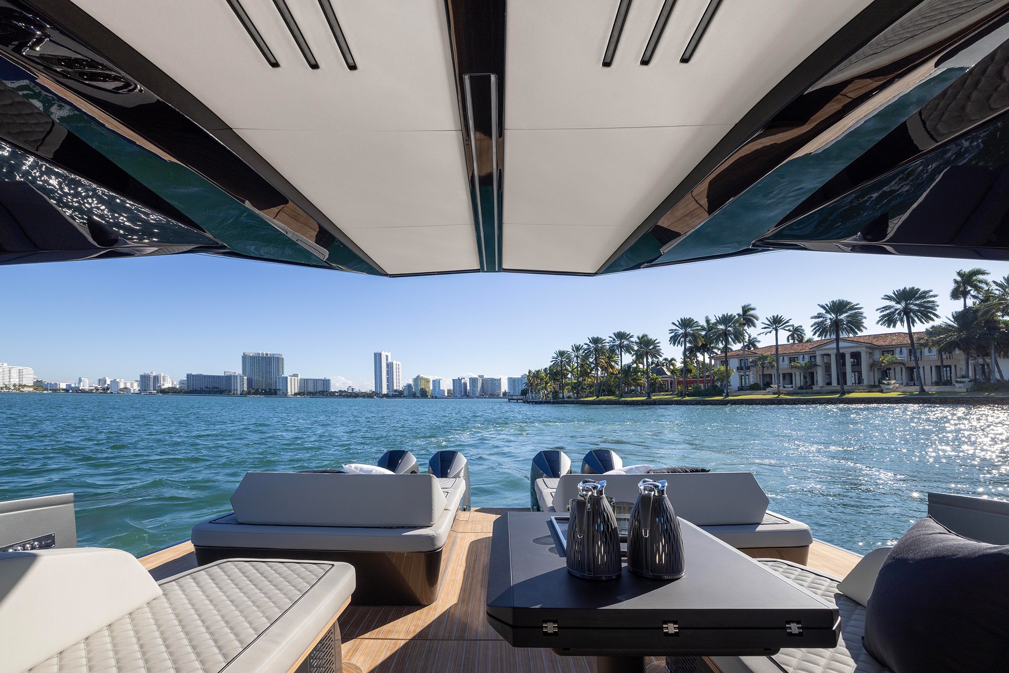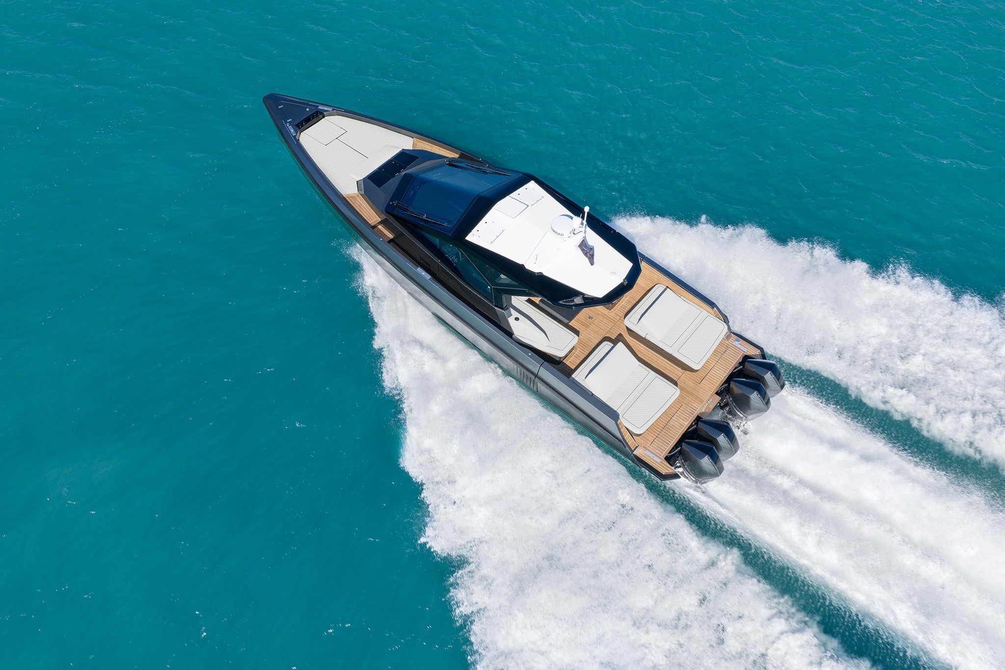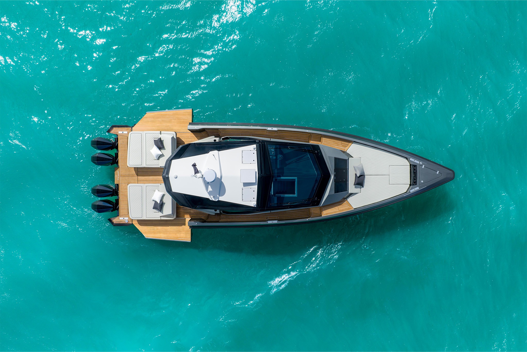 新款Wally游艇融合了wallypower系列与wallytender系列的特点,而外舷设计又赋予其夸张的性能表现和动感的操控体验。 新款Wallypower 50X游艇采用wallypower系列的标志性线条轮廓,可以与著名的58X相提并论,不仅拥有同样的休闲舒适感受,还能满足平日聚会娱乐或者周末探索海岸的不同需求。 当然,沃利的创新精神从未缺席,因此我们在设计上精益求精。有些元素可能会让wallytender的用户感到更为熟悉,例如更加开阔的驾驶舱区域以及船尾甲板。借助模块化的甲板格局,50X的空间可以任意变化以满足不同类型运营模式的需求。 所有沃利“X”级游艇均针对舷外推进系统进行了优化,船体横梁上的凹槽可以安装四台额定功率高达500匹马力的Mercury Racing舷外发动机。由于采用这套极致性能的动力组合,50X的航速可以轻松突破50节,最大里程可达180英里。如果选择4台400匹马力发动机的配置,您仍然可以获得达到48节的最大航速以及240英里的续航能力。 虽然采用舷外推进系统,但这并不意味着会影响乘客在船尾平台上轻松吸水的自然野趣。加上设施齐全的双人船舱以及设计巧妙的淋浴间,50X可以说是麻雀虽小,五脏俱全。沃利游艇,真正遥遥领先!